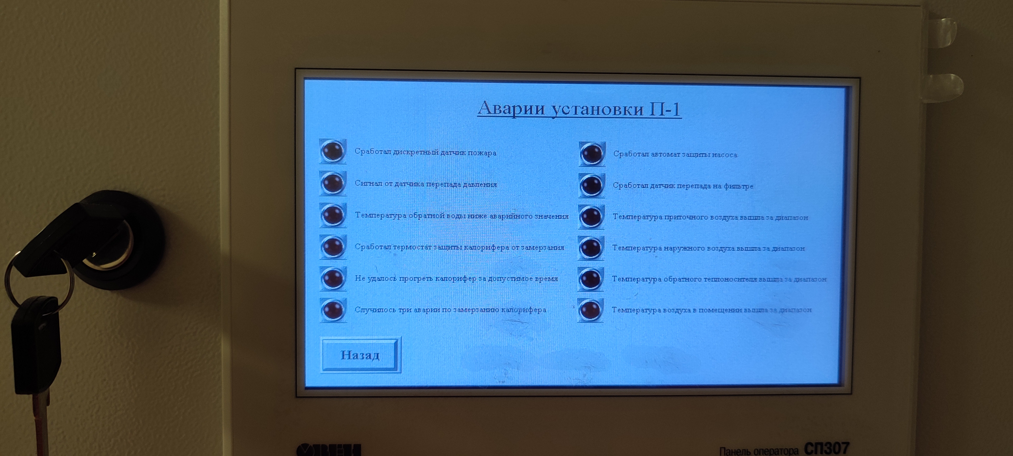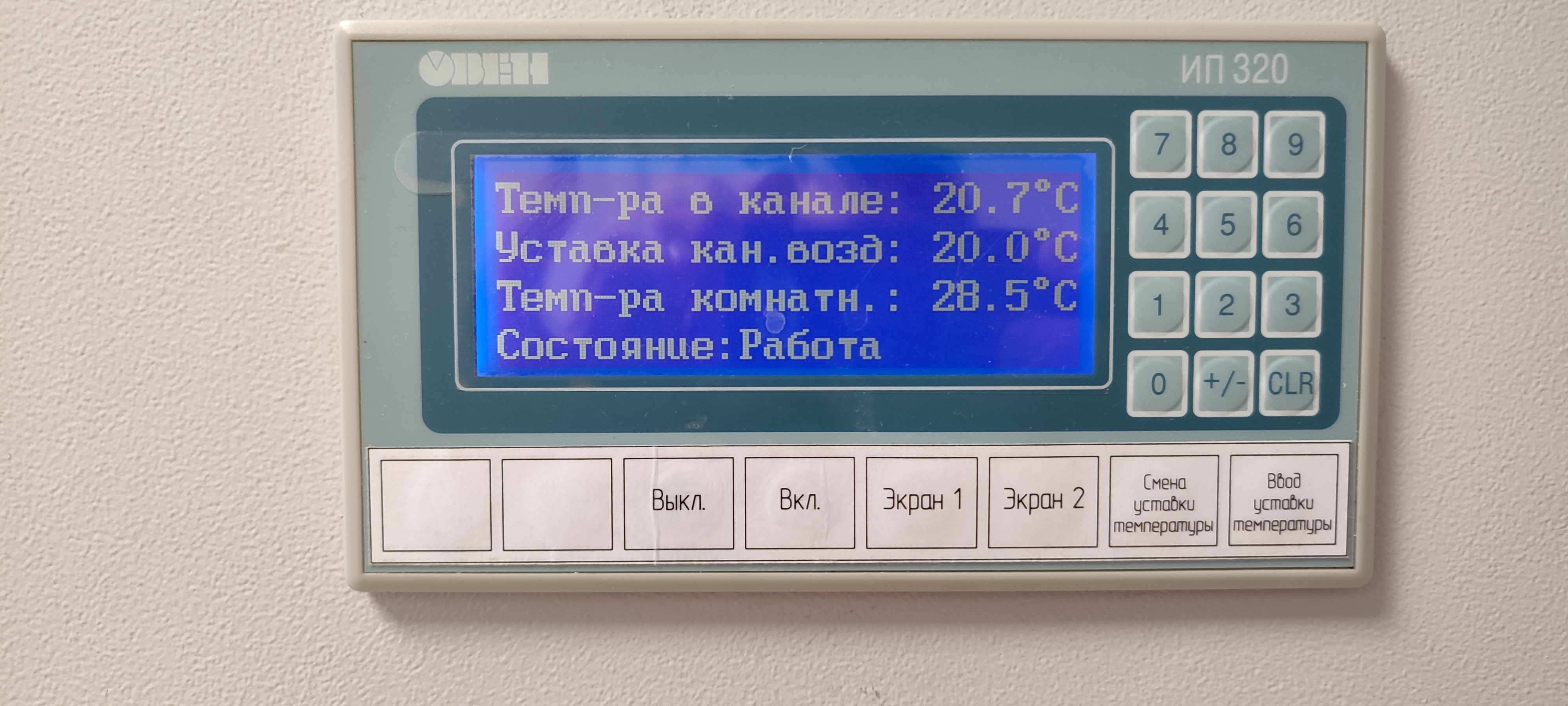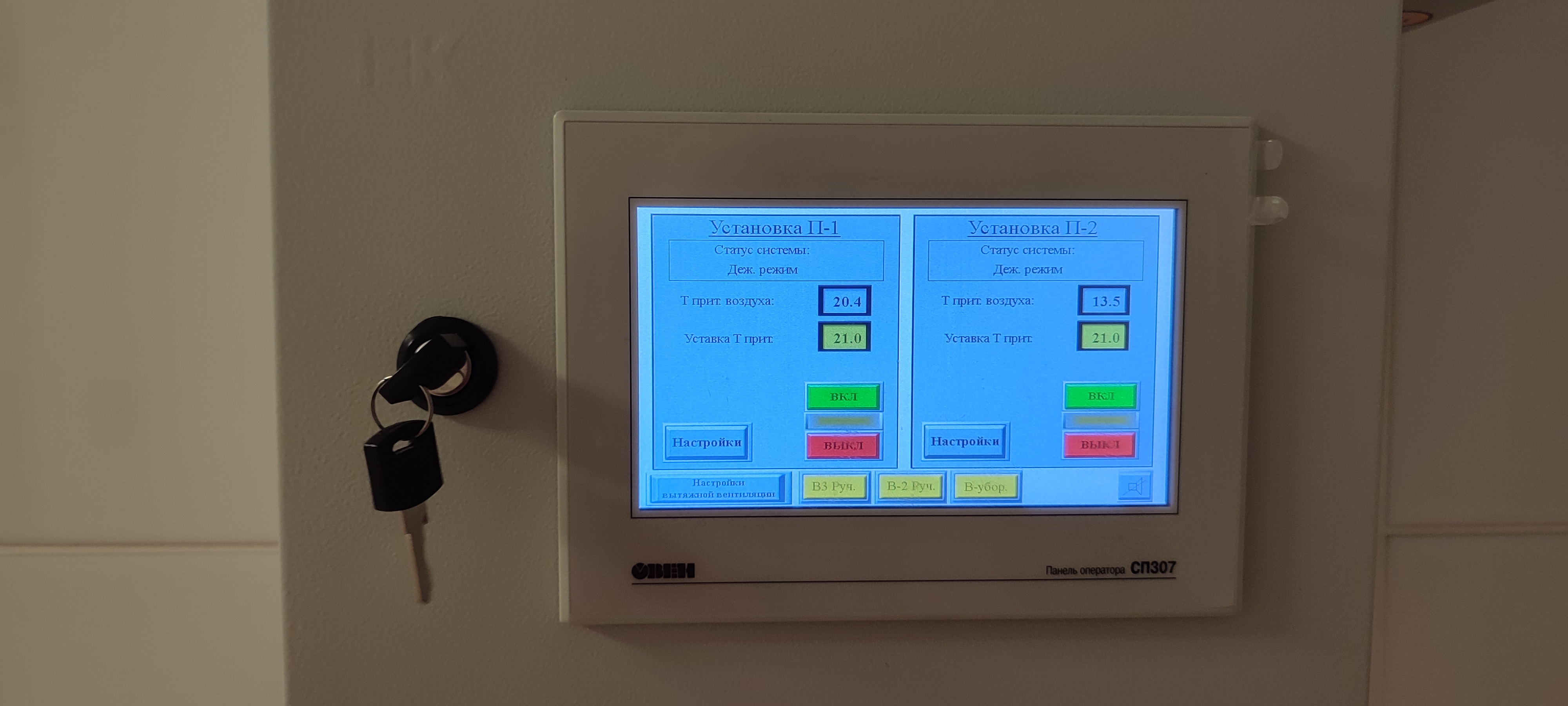 В цехах, где используется 1 приточная и 1 вытяжная вентиляции, использованы панели оператора ИП320.