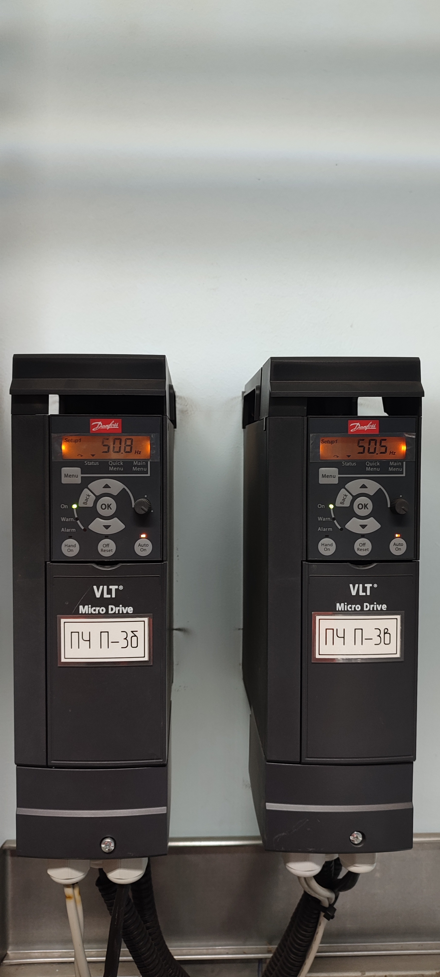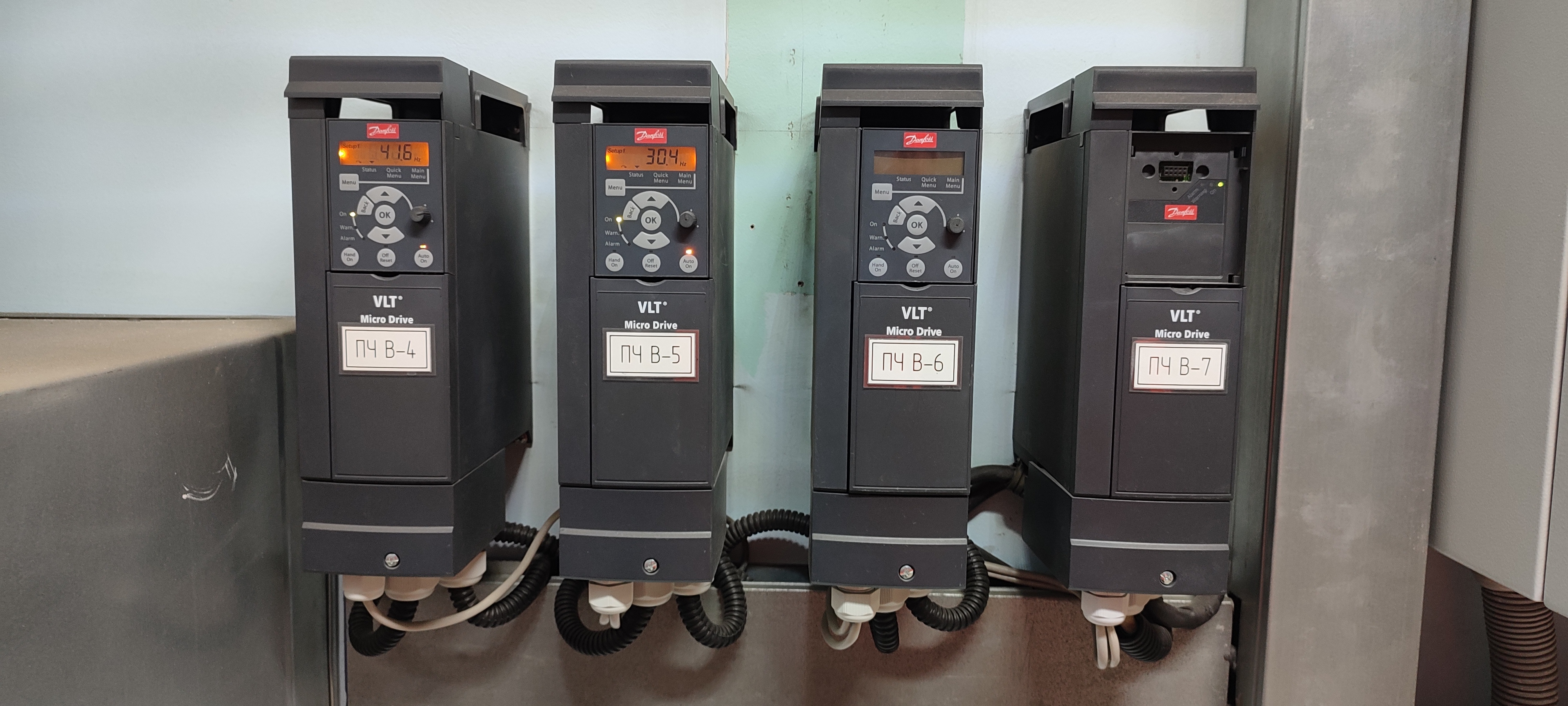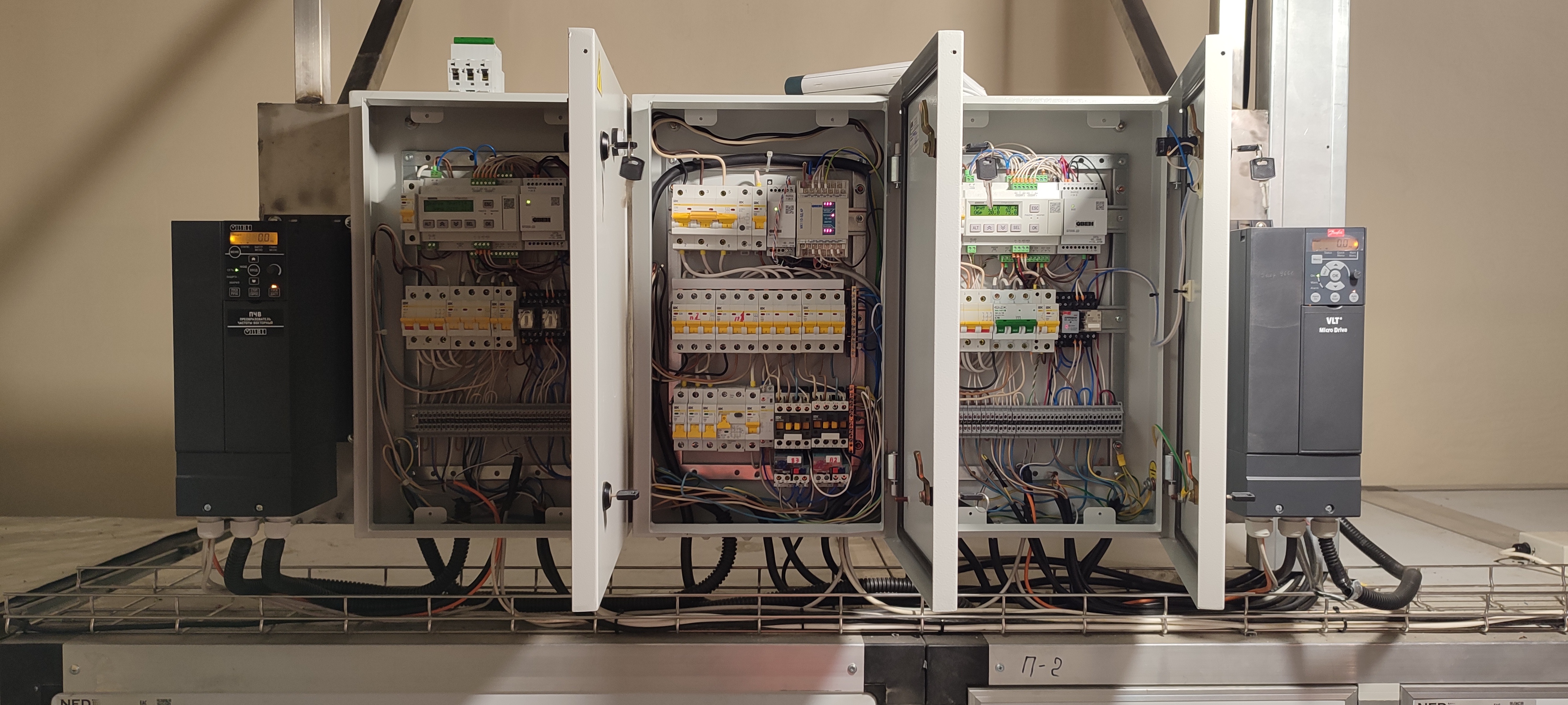 1. Первое производственное помещение, поделенное на зоны: СП307Б (1шт.) + ТРМ1033 (3шт.) + ПЧ Danfoss FC51 (аналог ОВЕН ПЧВ1) (6шт.)