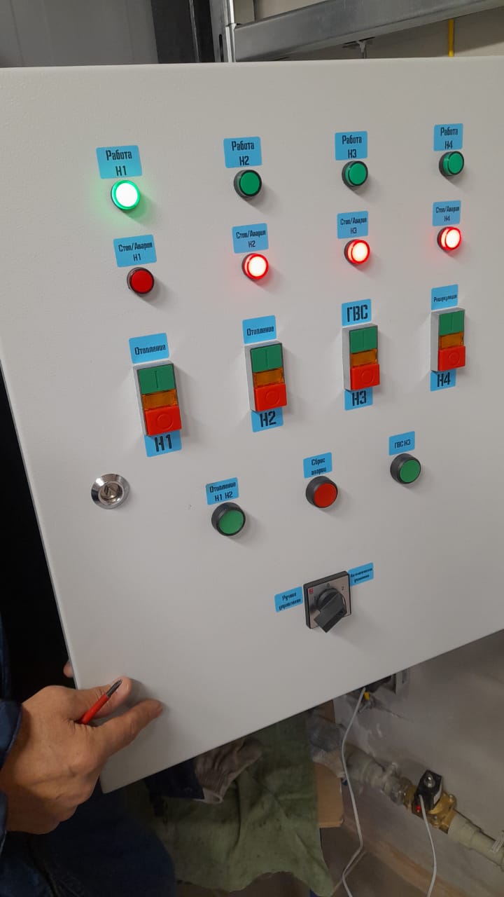 Перед нами была поставлена задача произвести все монтажные и пуск-наладочные работы всего оборудования в котельной, а также разработать и собрать шкаф управления с погодозависимой автоматикой.