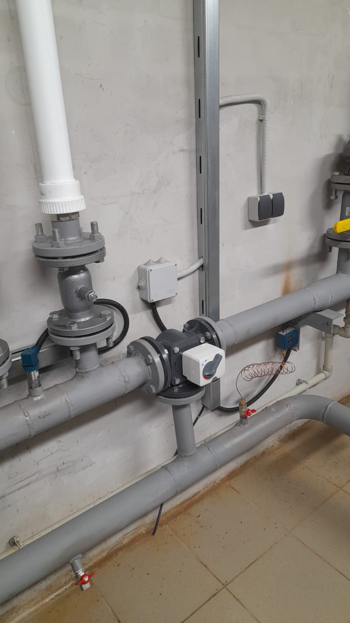 Для автоматического регулирования и контроля за оборудованием был выбран ТРМ1032М. На базе данного контроллера было реализовано управление двух групп циркуляционных насосов, запорно-регулирующих кранов с электроприводами. Благодаря готовому алгоритму прибора, котельная работает по заданному отопительному графику, что позволяет поддерживать комфортную температуру в помещениях при изменении температуры наружного воздуха. Работоспособность насосов отопления и ГВС контролируются по реле перепада давления, также предусмотрена ротация и функция аварийного ввода резерва.