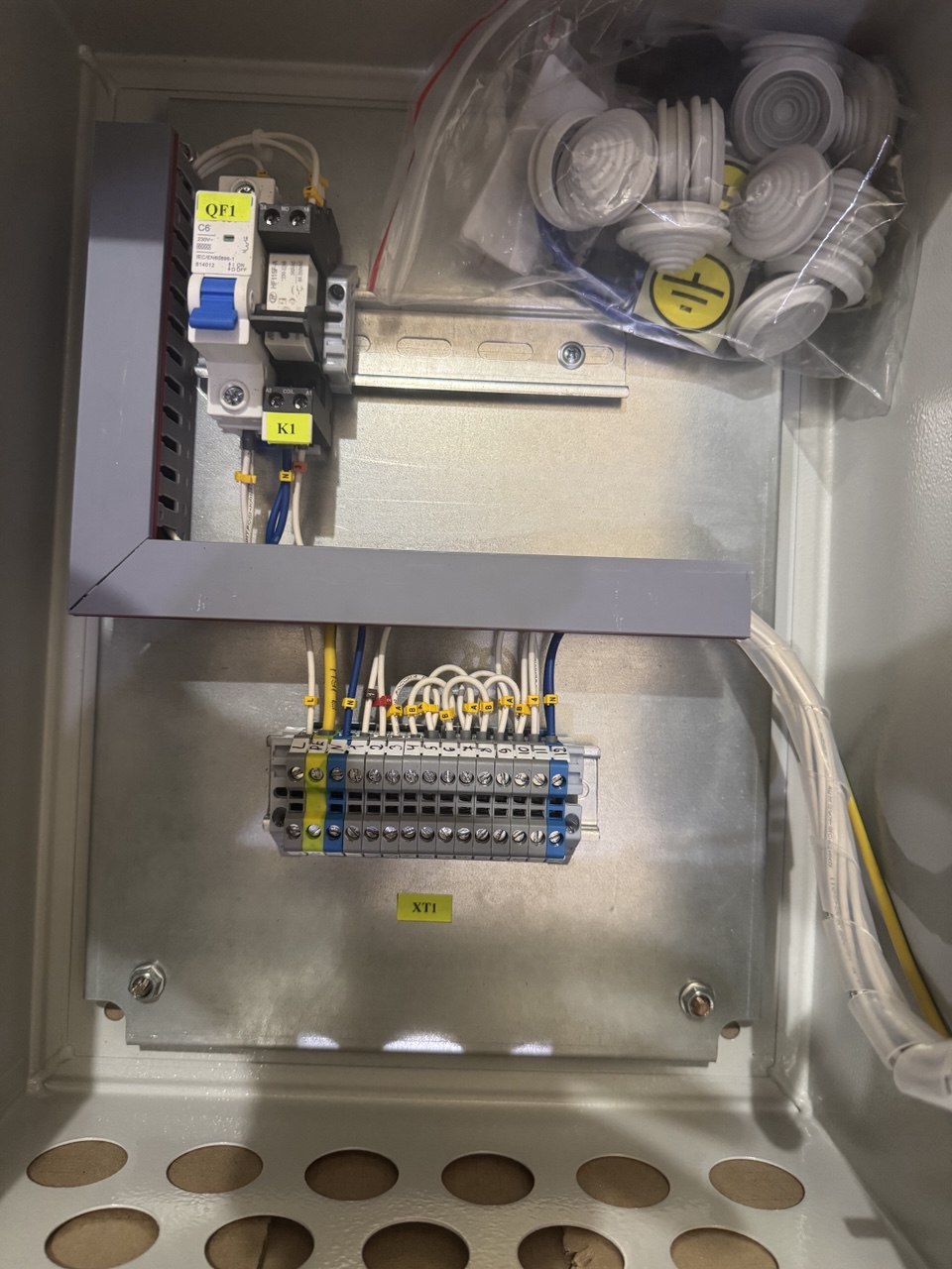 Блок управления котлом состоит из: КТР-121.220.01.10;Комплект реле: колодка винт, пластик.клипса,маркер,реле 2CO 8A; AgNi; катушка 230B AC; Автоматический выключатель NXB-63 3P 25А 6кА кривая D; Автоматический выключатель NXB-63 3P 16А 6кА кривая D;Авт.выкл NXB-63 1P 6A 6кА х-ка C ;Контактор NC1-0910 3p 9А АС3, катушка 230В 50Гц, вспомогательный контакт 1НО;Автоматический выключатель защиты двигателя NS2-25X 1.6-2.5A с поворотной ручкой;Розетка модульная на DIN-рейку 2P+PEN 16A 220В РМ-102;Кросс-модуль на DIN-рейку 2х7 групп 100А ШН-103;Корпус металлический ЩМП 500х400х220 У2 IP54